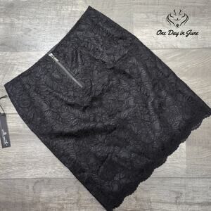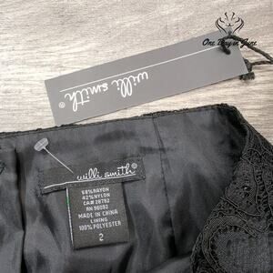 The black lace writhes and dances in savage layers, a twisted ballet of polyester and nylon that speaks to something deeper in the primitive human soul. Like a midnight waterfall cascading over volcanic rock, this Willi Smith mini skirt creates an optical illusion so mesmerizing it could hypnotize a rattlesnake - and it's still got the price tags swinging in the breeze like tiny surrender flags.