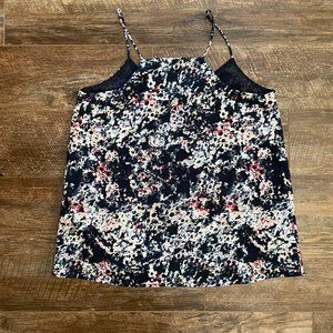 Fully lined. My favorite outfit with this tank was under a navy and white striped blazer with jeans! V-neck detail - printed floral pattern. Excellent condition!