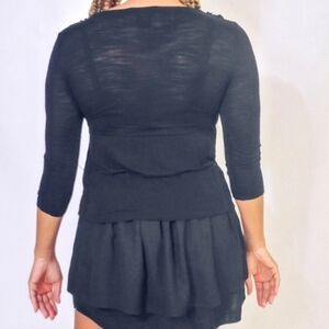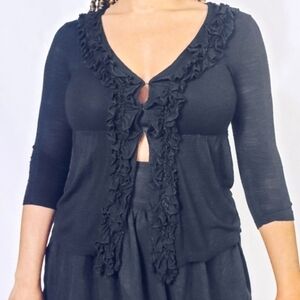 Willi Smith ruffled open front top with 3 hook closure and 3/4 sleeves.