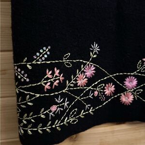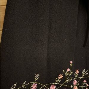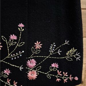 Willi Smith Size 6 Black Wool Wrap Style Side Tie Skirt Floral Embroidery
