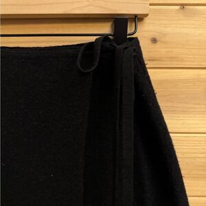 Black Wool Above The Knee Faux Wrap Style Floral Embroidered Skirt With Tie At Side Of Hip
