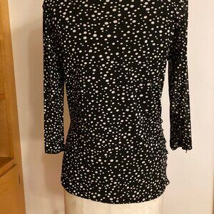 Willi Smith top in black with white dots. V-neck and ruched in the front. 3/4 length sleeves and excellent condition.