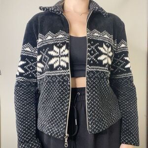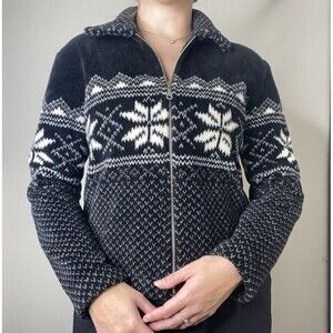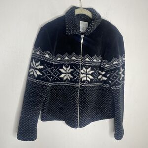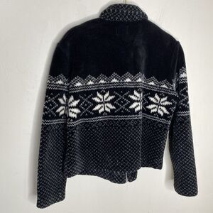 Willi Smith Vintage Black Winter Fuzzy Snowflake Zip Jacket Size Small Cropped