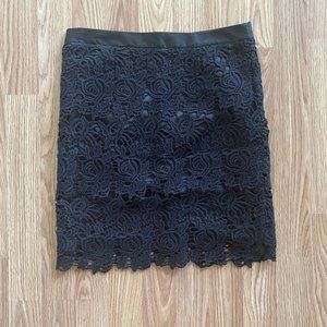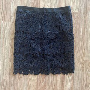 Willi Smith Women Skirt Crochet Net Black Straight Knee Length Skirt Size 2