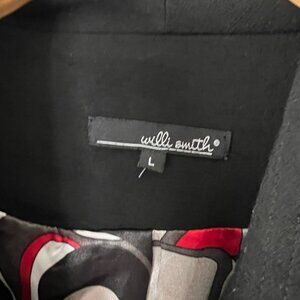 Chic and versatile, this Willi Smith cropped blazer jacket in size Large is perfect for work, evening, or layering. Featuring an open front with wide lapel collar and a modern cropped fit, this black blazer can be styled for both professional and casual looks.