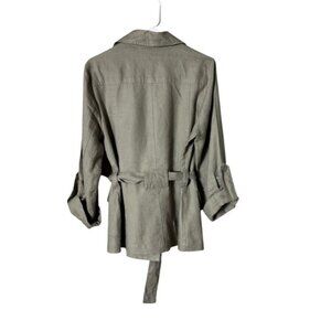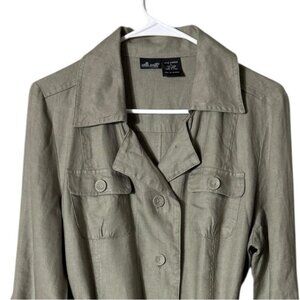 Willi Smith Womens Linen Jacket Large Military Green Gorpcore Utility Lagenlook