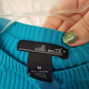 Willi Smith's women's medium blue ribbed cotton 3/4 sleeve cardigan sweater is perfect for the cooler weather. This stylish and comfortable sweater is made from 100% cotton and features a ribbed design, 3/4 sleeves, and a button-up front. It's perfect for layering over a blouse or shirt, and it's sure to keep you warm and cozy all season long.