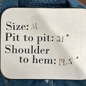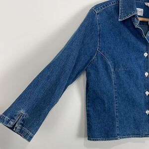 Excellent condition. Boxy cut denim shirt. Collar, buttons down the front. Sleeves are 3/4.
