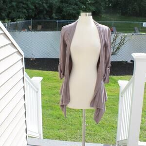 Willi Smith Women's Open Cardigan Minimalist Neutral Solid Taupe Tan Size Small