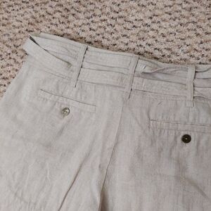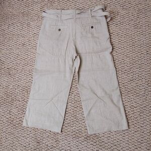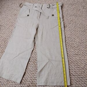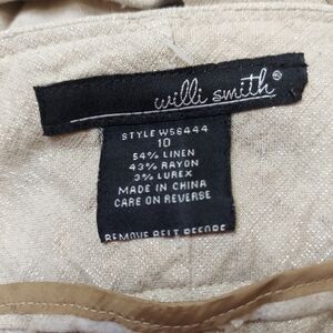 Willi Smith Womens Pants Linen Blend Crop Wide Leg Metallic Beige Khaki Size 10