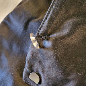 Other information: Back pockets still partially hemmed up, to be opened for use. Button in front needs a little stitching, loose thread.