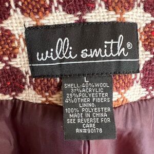 Made of 40% wool, 31% acrylic, 25% polyester and 4% other fibers. Lining is 100% polyester.