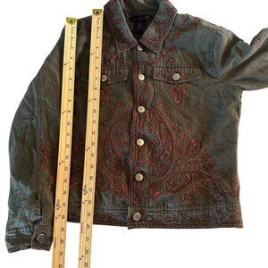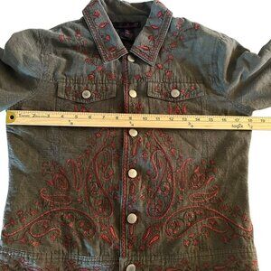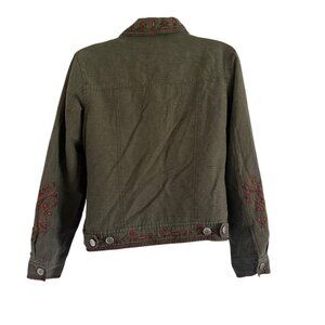 Willi Smith shirt shacket women's size S silk blend lined green, red embroidery