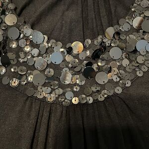 Willi Smith szS black sleeveless top with bling around neck & band on bottom EUC