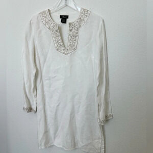 WilliSmith 100% Linen White Embroidered Tunic Top/Swimsuit coverup Size M
