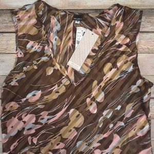 William B Silk Sleeveless Sheer V-Neck Blouse M