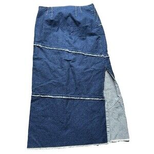 William B VTG Long Denim Skirt With Slit Fringe Detail 12