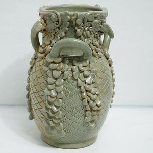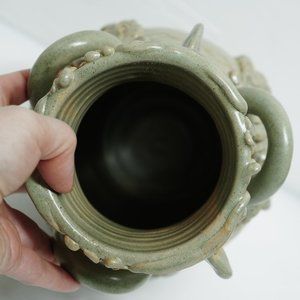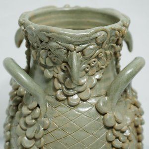 William Hunt Celadon Green Masquerade Bird Mask Stoneware Vase