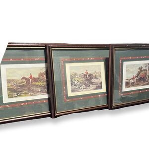 William J Shayer 20th Century French Framed Watercolor Hunt Scene Print Set of 3