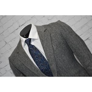 William John Blazer Tweed Style Mens Size 40 Reg Gray Herringbone Linen Wool