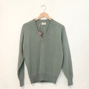 This cozy sage green V-neck lambswool sweater from William Lockie is a size Small. It is brand new with original tags.