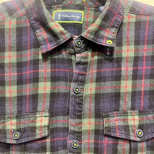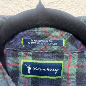 William Murray Golf Flannel Shirt Mens L Multicolor Plaid Cotton Stretch Pleated.