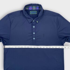 Up for sale is a William Murray Golf Polo Shirt in Navy Blue with Plaid Accents