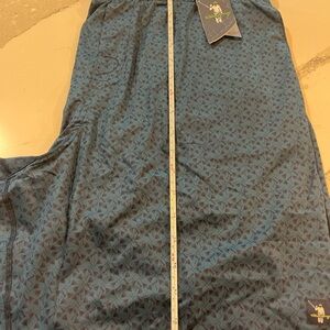 Stylish blue athletic shorts. Martini and mower pattern. Comfortable fit. Perfect for sports or lounging around.