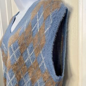 William Rast Argyle Soft Light Blue Tan Preppy Sweater Vest NWOT Size M