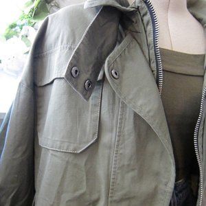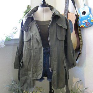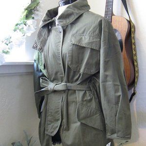 I received this really cool jacket as a gift and though I do like it I have another very similar SO, this wonderful piece has 3/4 dolman sleeves, an elastic waistband at the back to give it shape when it’s open ALONG with a tie to cinch it when closed. It has a nice heavy zipper down the front as well. Lots of pockets. Nice medium-light weight. It is not lined. All cotton. NWT!