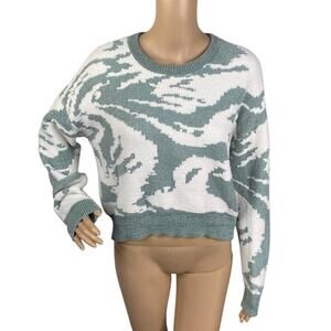 William Rast Green White Abstract Soft Knit Cropped Pullover Sweater SZ S