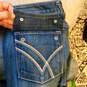 Belle flare jeans with the cutest pocket accents. Great quality to last a lifetime. Super cute and fun jeans!
