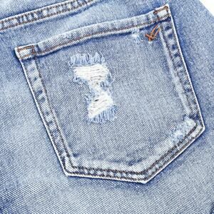 Notable Features/Flaws (Pictured): factory distress & patchwork; raw hem; button closure