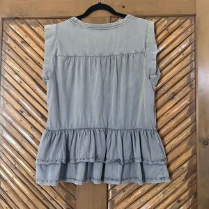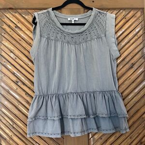 William Rast Light Gray Ruffle Sleeveless Top with Studded Detail - Size Large