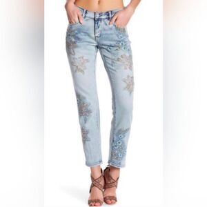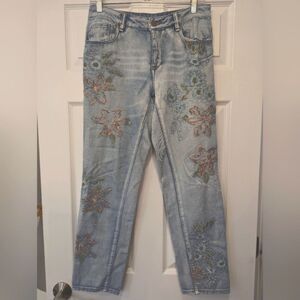 William Rast My Ex’s Jeans embroidered floral straight mid rise light jeans 29