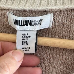 Chic V-neck sweater vest by William Rast. Features a stylish cream and beige pattern. Ideal for layering. Cropped