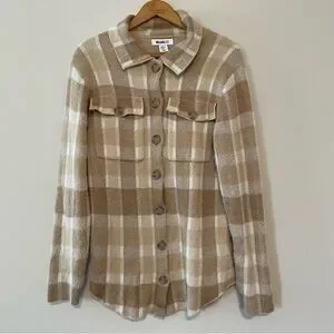 William Rast Plaid Shacket Womens XS Tan Cream Button Front Knit Shirt Jacket