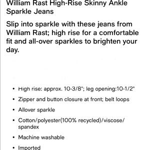 William Rast High Rise Ankle Skinny Sparkle Jeans. Approximately 25 1/2 inch inseam.