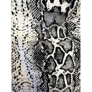 Dramatic snakeskin print denim, in easy-to-pair black and white. 98% cotton and 2% elastane means there's just enough stretch, but not so much give that they lose their shape after hours of wearing. Love these with Dr. Martens and a band tee, but they look just as perfect with heels and cashmere. A classic with edge! Excellent condition with no rips, tears, stains.