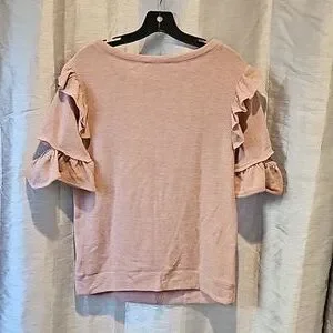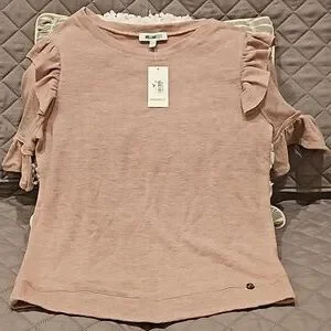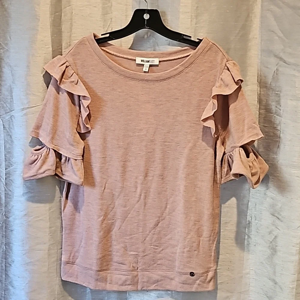 William Rast Olive Blush lightweight sweater top size XS, half sleeves with ruffle detail, soft feel, new with tags see all photos for details!