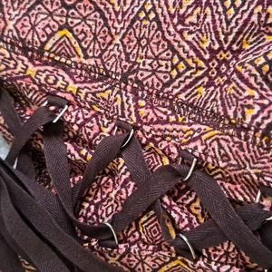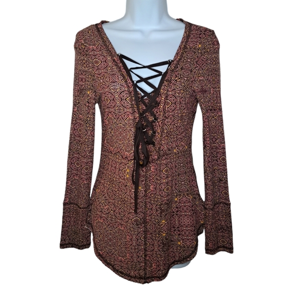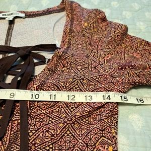 Pink yellow, brown and black on a long sleeve stretchy top by William Rast. Lace up front. Super cute. Very gently worn.