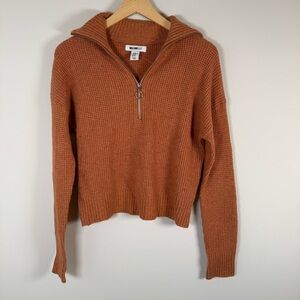 William Rast Waffle Knit Half Zip Up Cropped Sweater Burnt Orange Size XS NWOT