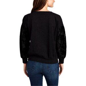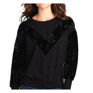 William Rast Womens Black Hannah Sweatshirt Velvet Inlay Crew L/S Size Large Pullover