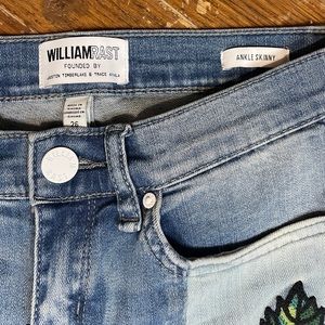 William Rast Women's Blue Contrast-Wash Embroidered ankle Skinny Jeans Size 26 juniors