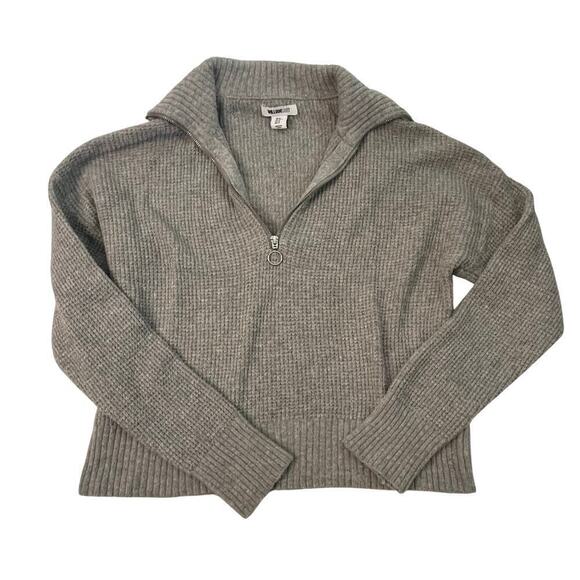 William Rast Womens Medium Quarter Zip Pullover Gray Stretch Waffle Top
