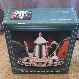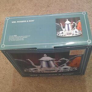 Very cute 4 piece coffee set. 12 1/4" diameter tray. Never used. Clean non-smoking home.
