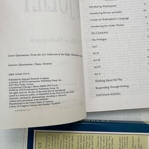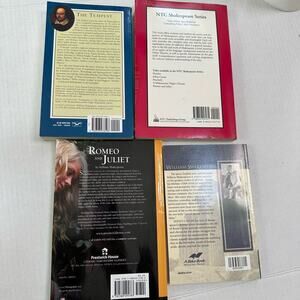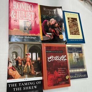 William Shakespeare Book Set - Romeo Juliet, The Tempest, Othello, Julius Cesar, The Taming of the Shrew. You get everything in photos, there are two Romeo and Juliet books. Some small markings but no noticeable highlighting, underlining, or notes. In wonderful preowned condition. Please view (zoom in) photos for a visual description. Ships fast, a completely smoke-free environment. Perfect for book club, classical homeschool education, or your own personal library.