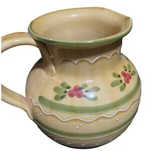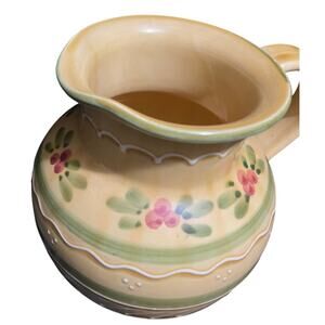 William Sonoma Pitcher - Hand Painted - Yellow - Green Florals Pottery