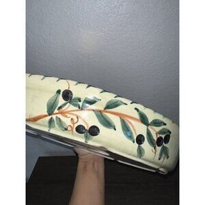 William Sonoma Portugal Hand Painted Casserole Oval Dish Olive Branches