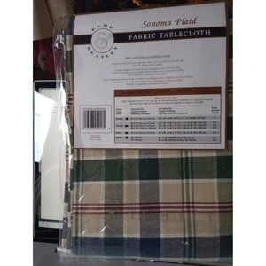 William Sonoma plaid fabric tablecloth square 52x52 NOS 52x52 Green/Tan